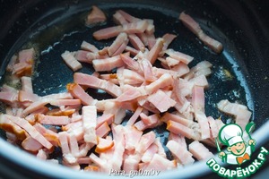 Положить в мультиварку бекон и обжарить в течение оставшихся 5 минут на программе Поджаривание. -