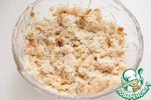 1. Батон натереть на терке или измельчить руками. Замочить в сливках. -