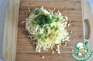 Трём Маасдам на крупной терке, мелко нарезаем укроп,