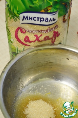 • 2. В сотейник влить лимонный сок, добавить цедру, сахар и прогреть, чтобы сахар растворился.