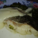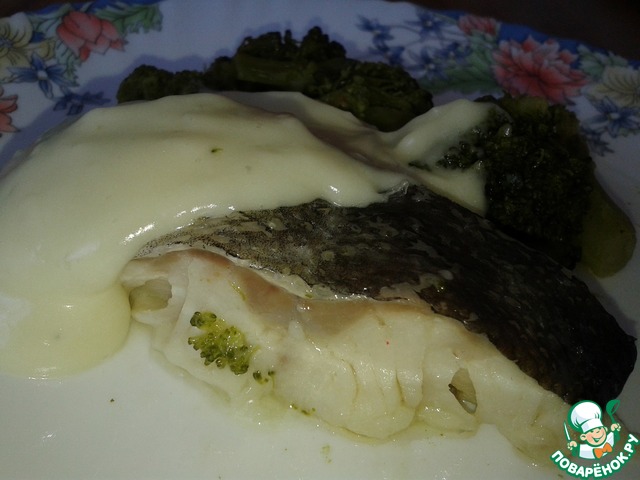Выкладываем треску на блюдо. И теперь, чтобы достичь идеальной красоты, берем ситечко и помогаем маслу окончательно соединиться с белком. Это делается движениями влево-вправо, либо такими, как взбивают омлет.