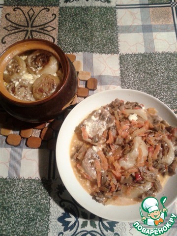 Рецепт «Гусарики в горшочках в сметанно-грибном соусе»: