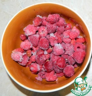Малину размораживаем и взбиваем с сахаром в пюре. Удобно в блендере.