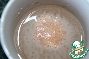 Дрожжи растворяем в тёплой чуть подслащённой воде и даём проснуться минут 10.