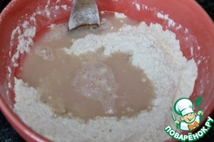 Добавляем дрожжи и растительное масло в мучную смесь.