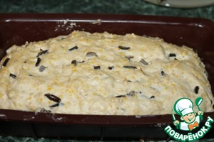 Форму смазываем растительным маслом, выкладываем в неё тесто и даём постоять ещё раз.