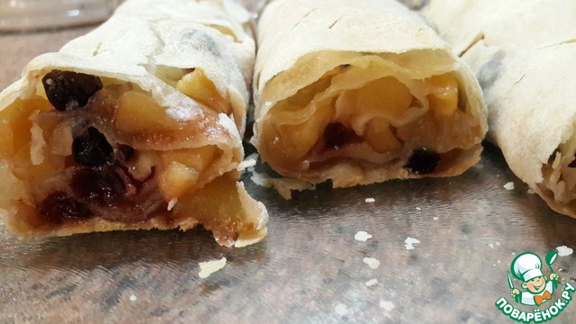 Рецептов штруделя на сайте много. Но именно в таком сочетании - постное тесто (очень простое в работе) и карамелизованная начинка - кажется, не встречается.