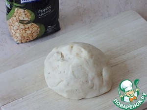 Залить две столовые ложки гороха Айдахо стаканом холодной воды, подсолить, добавить столовую ложку растительного масла. После закипания варить на медленном огне 30минут. Добавляем бОльшее количество воды, потому что гороховый отвар нужен будет для замеса теста.