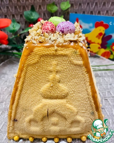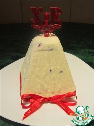 Перед подачей переложить пасху на блюдо, снять марлю.
