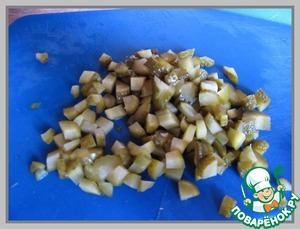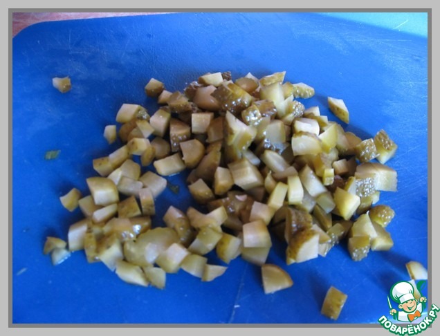 Этот шаг я делаю всегда в первую очередь. Пока режем остальные продукты, лук в огурцах успеет промариноваться -