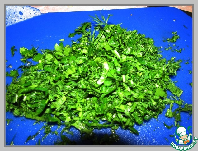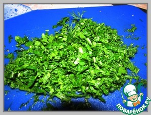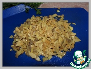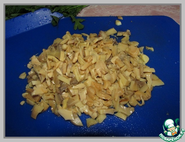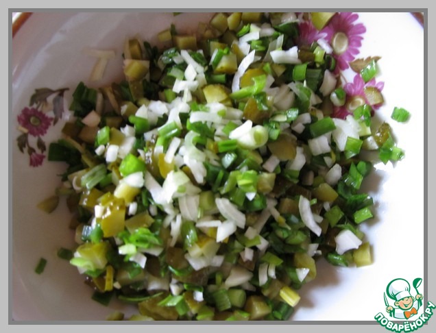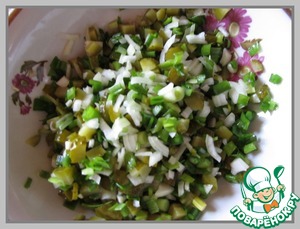 К ним добавляем мелко резанный репчатый лук, перемешиваем.