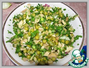 Простой в приготовлении, без майонеза (!), свежий салат. В результате шестилетних исследований могу утверждать, что очень его любят мужчины. На работе, при переезде и своему мужчине готовила, готовлю и буду готовить))). Едят все.