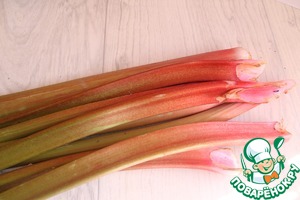 Итак берем 1 кг ревеня. Помоем и почистим его.