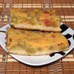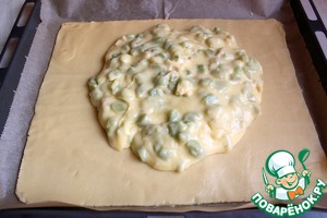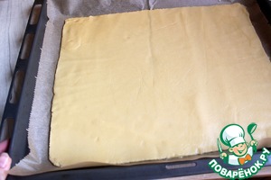 У меня был противень 38 на 33, на мой взгляд многовато теста, возможно в следующий раз разделю на два противня, чтобы начинки казалось больше, а теста меньше.