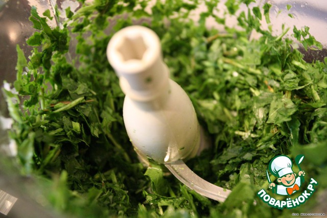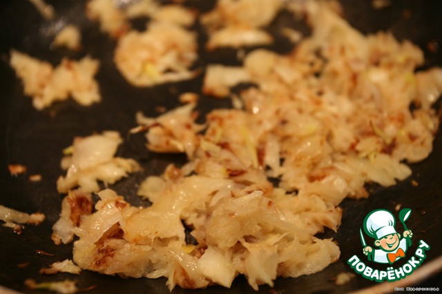 Половинку большой луковки или 1 маленькую перемолоть в блендере, спассеровать после морковки, добавить в кастрюлю.
