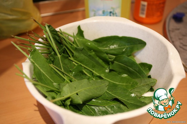 Щавель положить в дуршлаг, промыть водой, просушить.