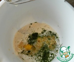 Добавить соль, яйцо и обжаренные лук и чеснок, укроп. Перемешать.