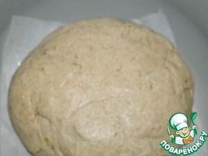 Всыпать половину просеянной муки, хорошо размешать. Продолжая все время размешивать, постепенно добавить оставшуюся муку. Переложить тесто на присыпанную мукой поверхность и вымешивать 10 минут. Оставить в теплом месте на 1 час.