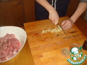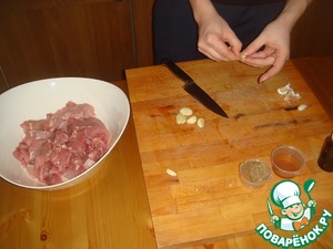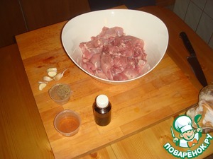 - Порезанная ломтиками чищенная куриная голень 1кг.