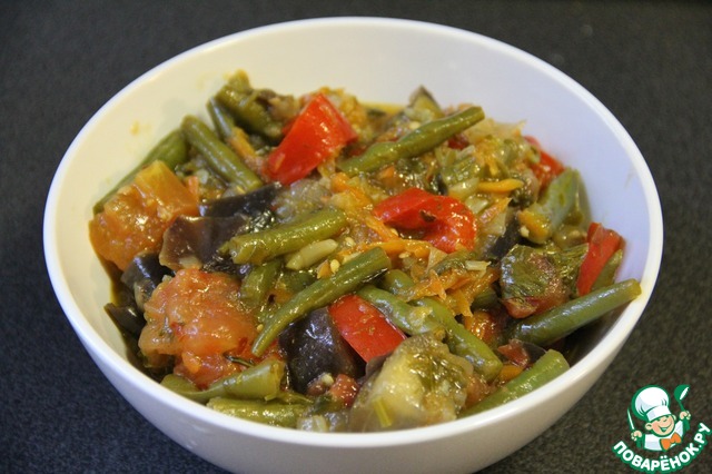 На сайте есть 7 рецептов аджапсандали. Все они разные, отличаются и составом ингредиентов, и технологией приготовления, и назначением. Сначала я хотела добавить свое фото к какому-нибудь рецепту, но, когда очень внимательно, уж, поверьте мне, изучила каждый, я поняла, что рецепт, который я хочу вам предложить, отличается от всех. Вот поэтому я и решила разместить свой вариант этого потрясающе вкусного блюда. Аджапсандали или аджапсандал - блюдо кавказской кухни вообще, не только грузинской. Под разными названиями это блюдо бытует на кухнях всех кавказских народов - армян, абхазцев, азербайджанцев, и многих тюркских народов. В Болгарии и Турции подобное этому блюдо именуется «имамбаялды» — буквально «имам упал в обморок». Европейский аналог этого блюда — овощное соте. Готовится блюдо из обязательных ингредиентов: стручковая фасоль, баклажаны, помидоры, сладкий перец, репчатый лук, чеснок, кинза, реган (базилик), растительное масло и соль, перец по вкусу. Иногда добавляются картофель и острый перец, но в классический аджапсандали все таки картошку не кладут. Как, впрочем, и мясо. Это овощное блюдо. А с мясом - это совсем уже другая история, другое блюдо, с другим названием.