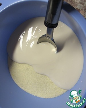 К манке добавить яйца, муку, соду, ароматизатор и лаймовое пюре. Всё хорошо перемешать миксером.
