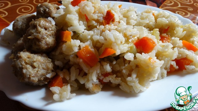 Рецепт «Ароматный рис с овощами и фрикадельками»:
