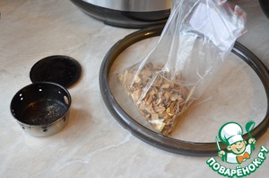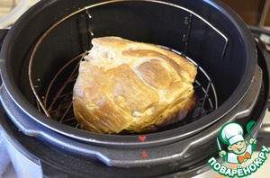 По истечении 3-4-х дней мясо хорошо промываем в холодной воде и приступаем к копчению. Нужно не забыть на крышке скороварки поменять белое кольцо на кольцо для копчения.