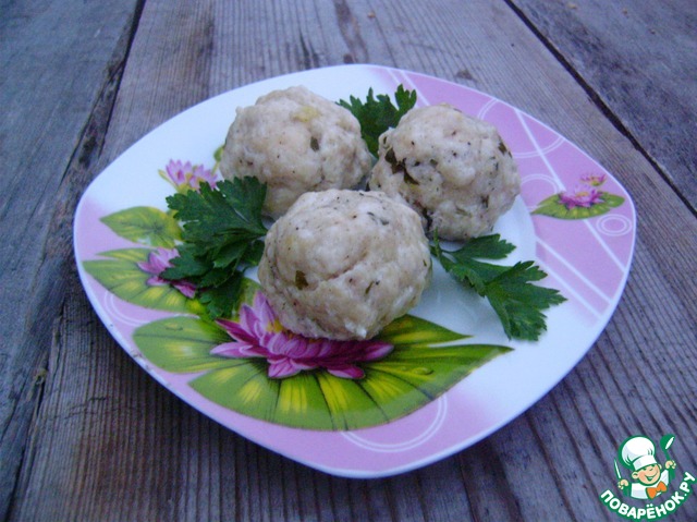 Сделайте фарш из куриного филе и горстки зелени. Зелень нужна только для запаха, поэтому без нее можно обойтись или заменить сухими травками.