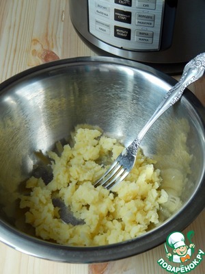 Отварить картофель в мундире в течение 20 минут. Можно сделать это в мультиварке в режиме «Мультиповар», установив температуру 150 гр.