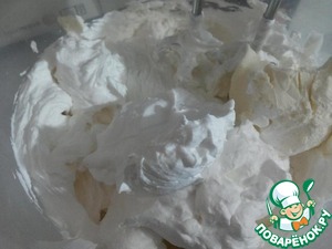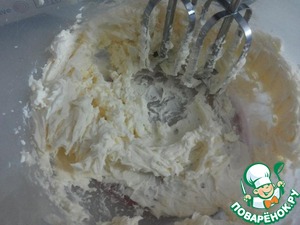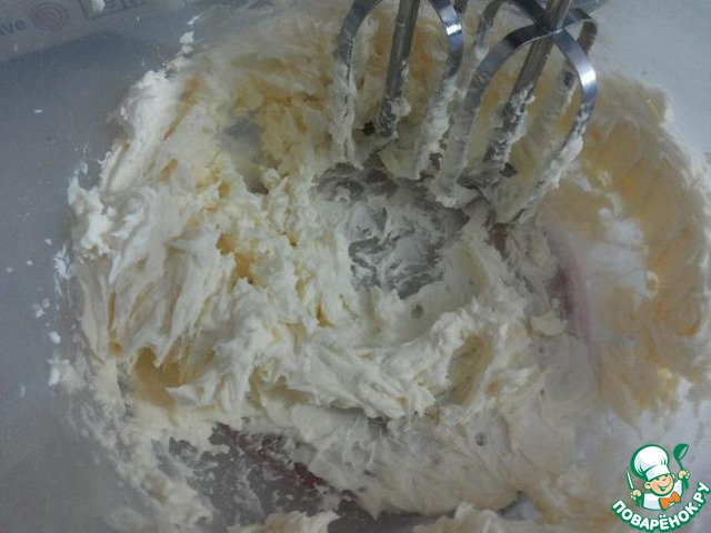 Отдельно взбить маскарпоне с оставшейся сахарной пудрой (50 г )