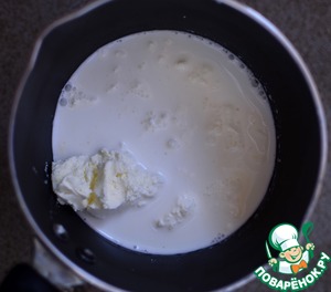 В сотейнике прогрейте сливки и Филадельфию, размешав до однородной массы.