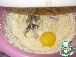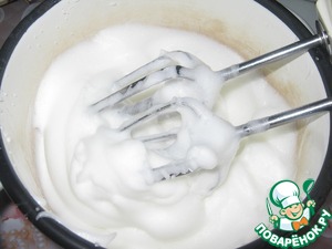 Отделить белки от желтков. Во взбитую массу добавить по одному желтки.