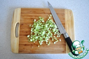 Черешки сельдерея вымыть, обсушить и так же мелко нарезать