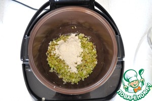 Добавить муку и готовить, постоянно помешивая, 1 мин.
