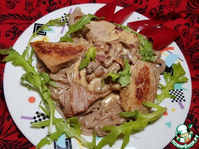 Рецепт «Медальоны из телятины под сливочно-грибным соусом»: