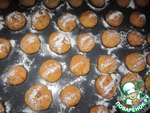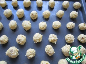 Противень смажьте маслом, либо застелите пекарской бумагой. Из теста скатайте небольшие шарики и выложите их на расстоянии друг от друга.