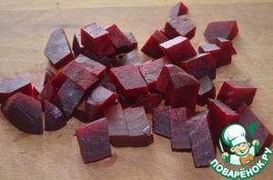 Свеклу отварить, почистить и нарезать небольшими кубиками |