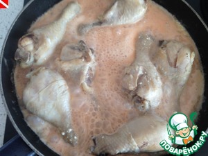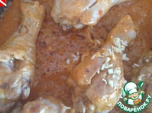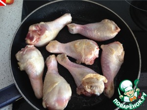 Выкладываем подготовленные кусочки курицы и слегка обжариваем со всех сторон. У меня сегодня голени, но с этим соусом нежным получается даже белое мясо.
