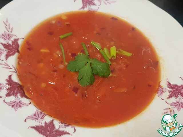 Хорошо готовить с вечера, т. к. супчик употребляют в холодном виде, хорошо особенно летом. Основные составляющие помидоры, лук, чеснок - как видите, он действительно витаминный. За фото к рецепту спасибо Юлии yuvl.