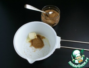 • В сотейник на медленном огне растопим сливочное масло с сахаром.