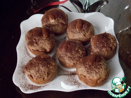Разложить по формочкам на 2/3. Положить с верху по орешку.