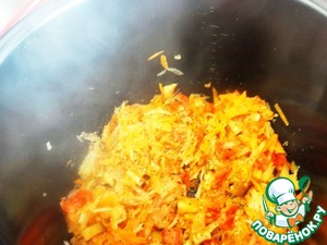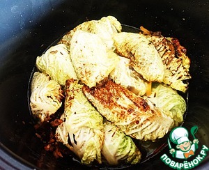 Залить горячим бульоном и тушить при закрытой крышке, задав программу "Тушение" 50 мин.