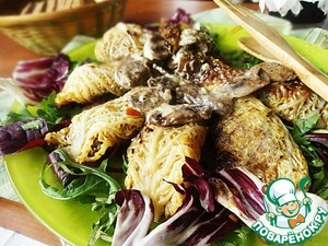Украсить голубцы обжаренными в сливках шампиньонами.