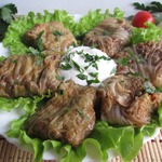 Подают голубцы на общем блюде. А потом каждый может отложить в свою тарелку столько, сколько хочет.