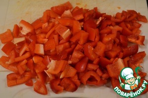 Перцы вымыть и нарезать средними кубиками, удалив сердцевину.