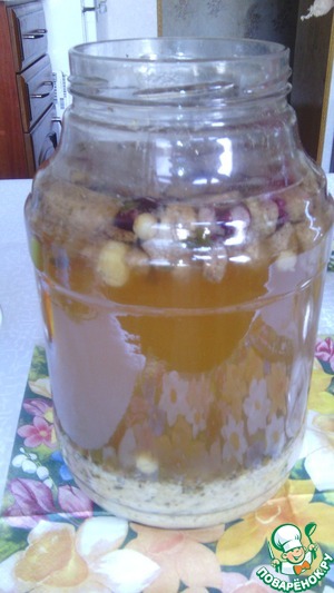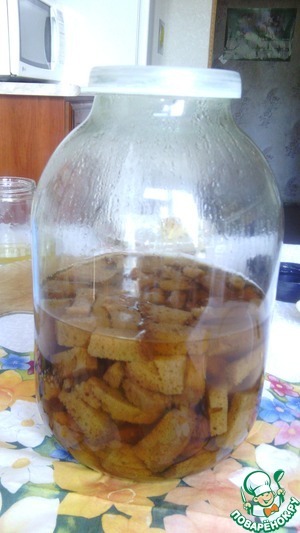 Для этого повторить шаг 1 и шаг 2, затем перелить получившийся хлебный настой в банку с квасным суслом, добавить 1 ст. л. меда, можно 1 ст. л. растворенного в воде солода ( но уже не обязательно), в зависимости от вида кваса добавить фрукты или ягоды, изюм, долить кипяченой охлажденной водой и готовить квас как обычно.