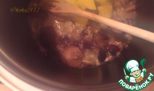 Затем выкладываем грибы и обжариваем всё вместе до звукового сигнала.
