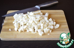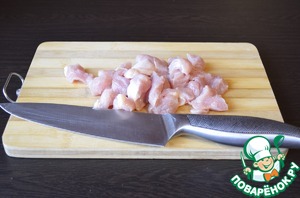 Грудку индейки порезать, выложить в чашу мультиварки.