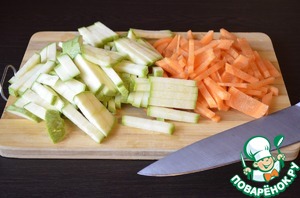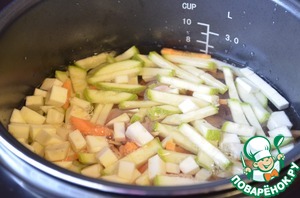 Порезать морковь и кабачок, выложить в чашу мультиварки.