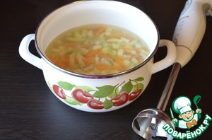 Когда суп будет готов, перелить его в кастрюльку и при помощи блендера измельчить.